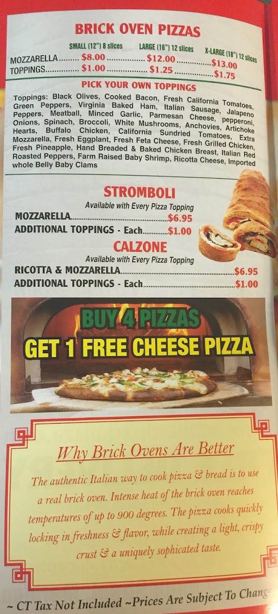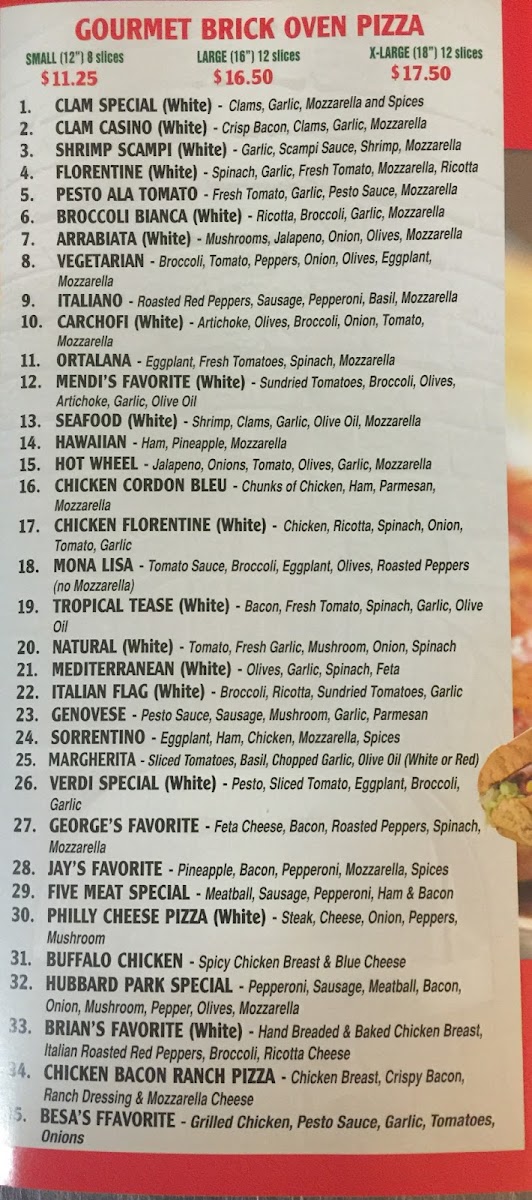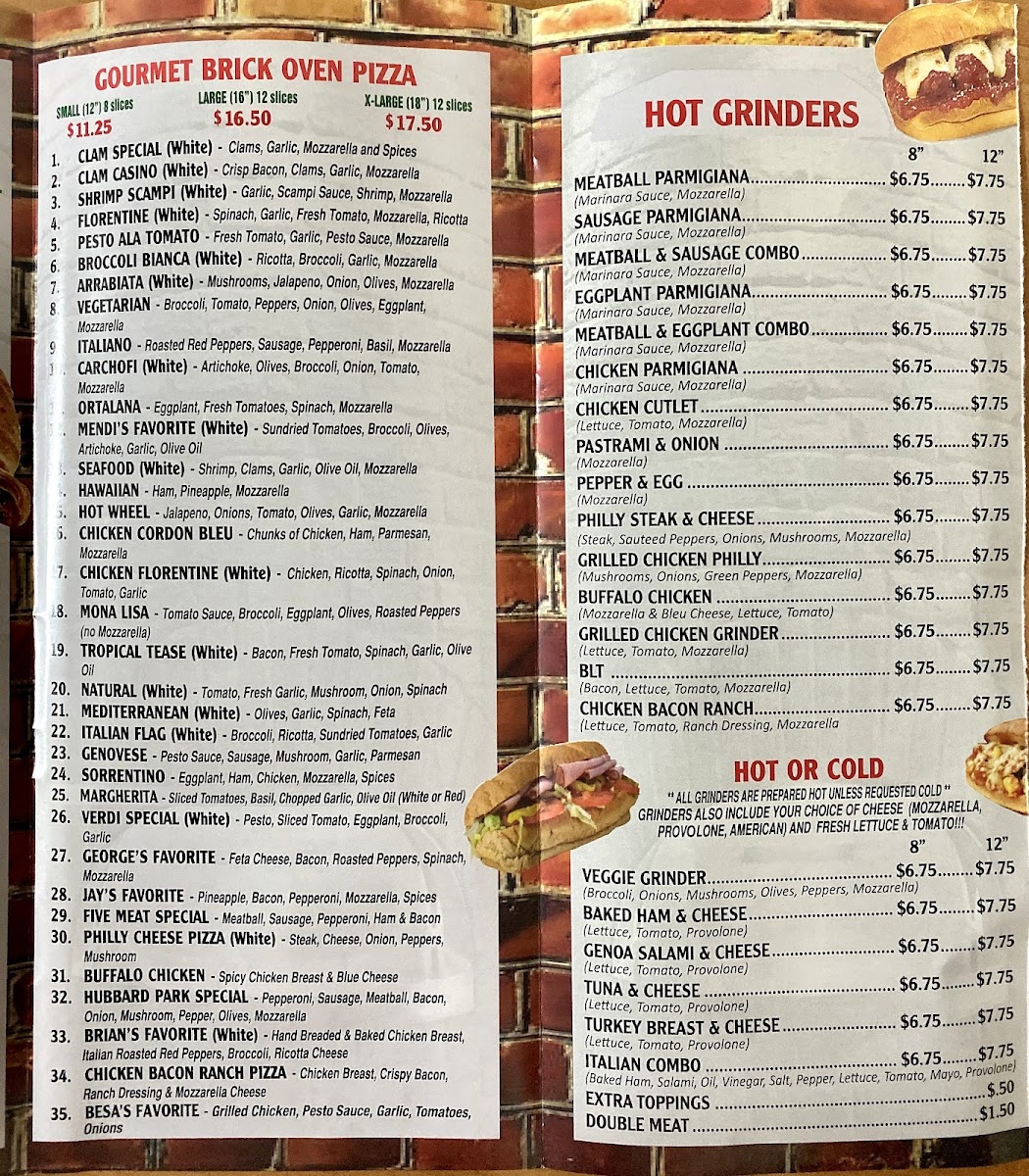 From a reviewer’s perspective, the menu at Hubbard Park Pizza, located at 843 W Main St, Meriden, CT 06451, United States, feels like a confident wrap-up of everything you’d hope to find in a classic neighborhood pizzeria with range and personality. The Gourmet Brick Oven Pizza selection sets the tone, offering distinctive choices like Clam Special, Clam Casino, Shrimp Scampi Florentine, and Pesto Ala Tomato, which go beyond standard toppings and highlight a more adventurous, flavor-forward approach. The grinder lineup reinforces that sense of comfort and generosity, with hot favorites such as Meatball Parmigiana, Sausage Parmigiana, Meatball & Sausage Combo, Eggplant Parmigiana, and Meatball & Eggplant Combo, while the hot or cold options-including Veggie Grinder, Baked Ham & Cheese, Genoa Salami & Cheese, Tuna & Cheese, and Turkey Breast & Cheese-make it easy to satisfy different tastes in one visit. For heartier cravings, the Homestyle Pasta Dinners stand out as reliable, filling classics, from Eggplant Rolatini and Baked Ziti to Chicken Parmigina, Eggplant Parmigina, and Pasta & Meatball, all of which feel designed for guests who want a comforting, sit-down style meal. Rounding out the menu, the Overstuffed Wraps-such as Chicken Bacon Ranch, BLT, Tuna, Veggie, and Turkey-add a modern, convenient option without losing the restaurant’s traditional appeal. Taken as a whole, this menu reads like a thoughtful conclusion to a familiar story: generous portions, recognizable Italian-American staples, and enough variety to keep both regulars and first-time visitors coming back, confident they’ll always find something satisfying on the table.